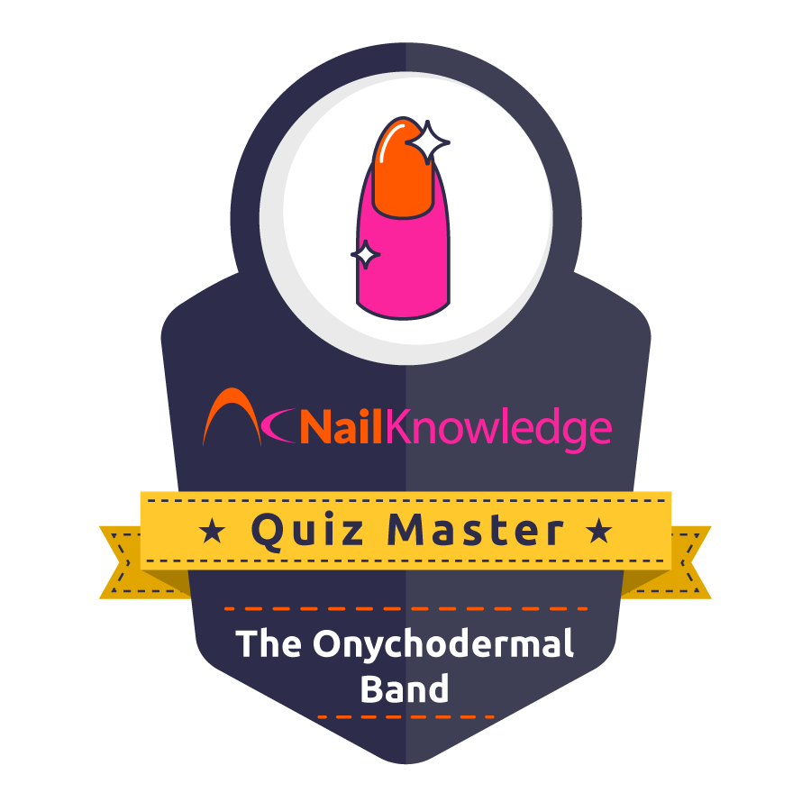 Esta insignia significa experiencia en el conocimiento de la Banda Onicodérmica. Se obtiene al aprobar los cuestionarios básico, profesional y avanzado sobre la banda onicodérmica, y representa el compromiso con un conocimiento exhaustivo del cuidado de las uñas.