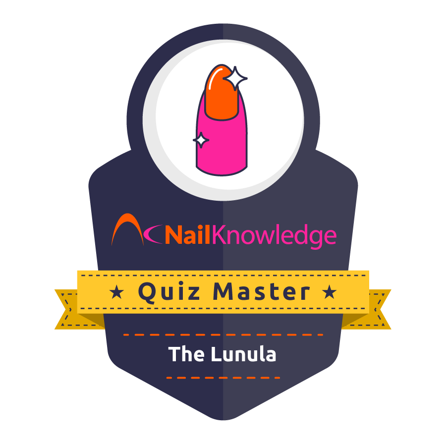 Esta insignia significa experiencia en el conocimiento de La Lunula. Se obtiene al aprobar los cuestionarios Lunula Básico, Profesional y Avanzado, y representa un compromiso con la comprensión integral del cuidado de las uñas.