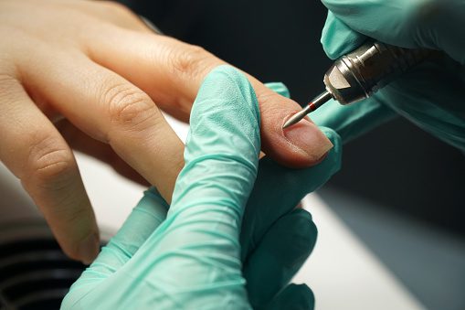 Manicure russa Normalmente, essa é uma técnica que utiliza uma lima elétrica (e-file) para remover a cutícula e a pele seca ao redor da base da unha. Ela pode ser bastante agressiva e invasiva e é possível danificar a pele saudável.