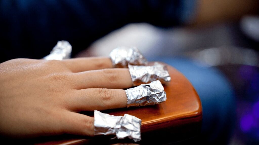 Uso de acetona ou outro solvente (removedor) para amolecer os revestimentos das unhas (esmalte em gel ou acrílico), possibilitando a rápida remoção da placa ungueal.