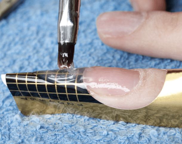 Um sistema de aprimoramento de unhas usando qualquer produto para unhas curado por UV.